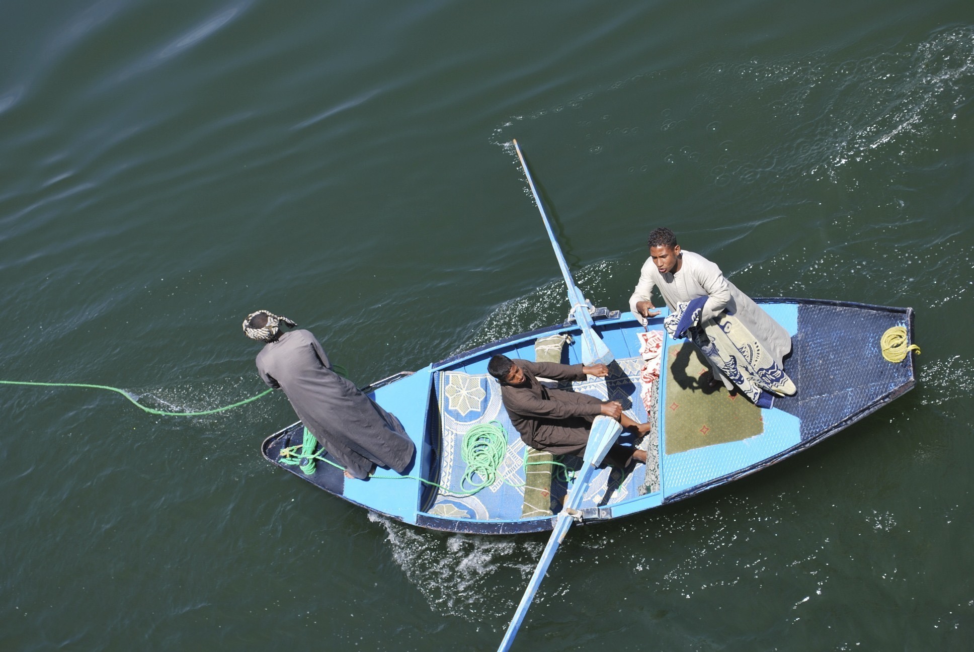 Aside from getting to see all the farming and small villages along the Nile river, we got to experience the rowing markets. Small fishing boats with two people will attach themselves to the boat and throw up goods in net bags to the people on the cruise. Buyers can negotiate a price for the goods they wish to purchase and will then place their money in the bags to throw back down to them. Our friends, Jamie and Robert, had small carpets flying into their room that they had to throw back as they weren’t interested in purchasing. Pretty fun to watch!