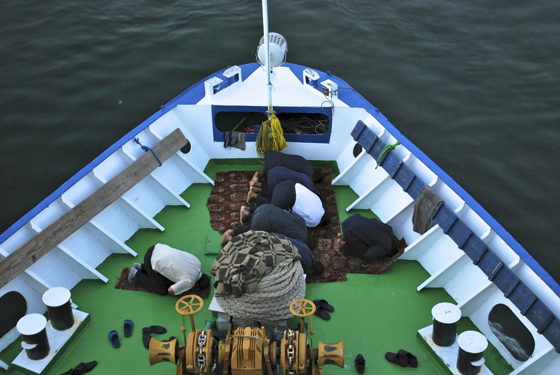 One thing I found so fascinating was the call to prayer that could be heard off shore in the nearby villages we were passing by. The call to prayer consisted of a man singing the various passages of the Koran over a microphone with speakers throughout the villages for everyone to hear. This happened five times per day. Our boat crew members would put their rug out on the front deck facing Mecca and pray. I had to wonder who was steering the boat during this time….??!