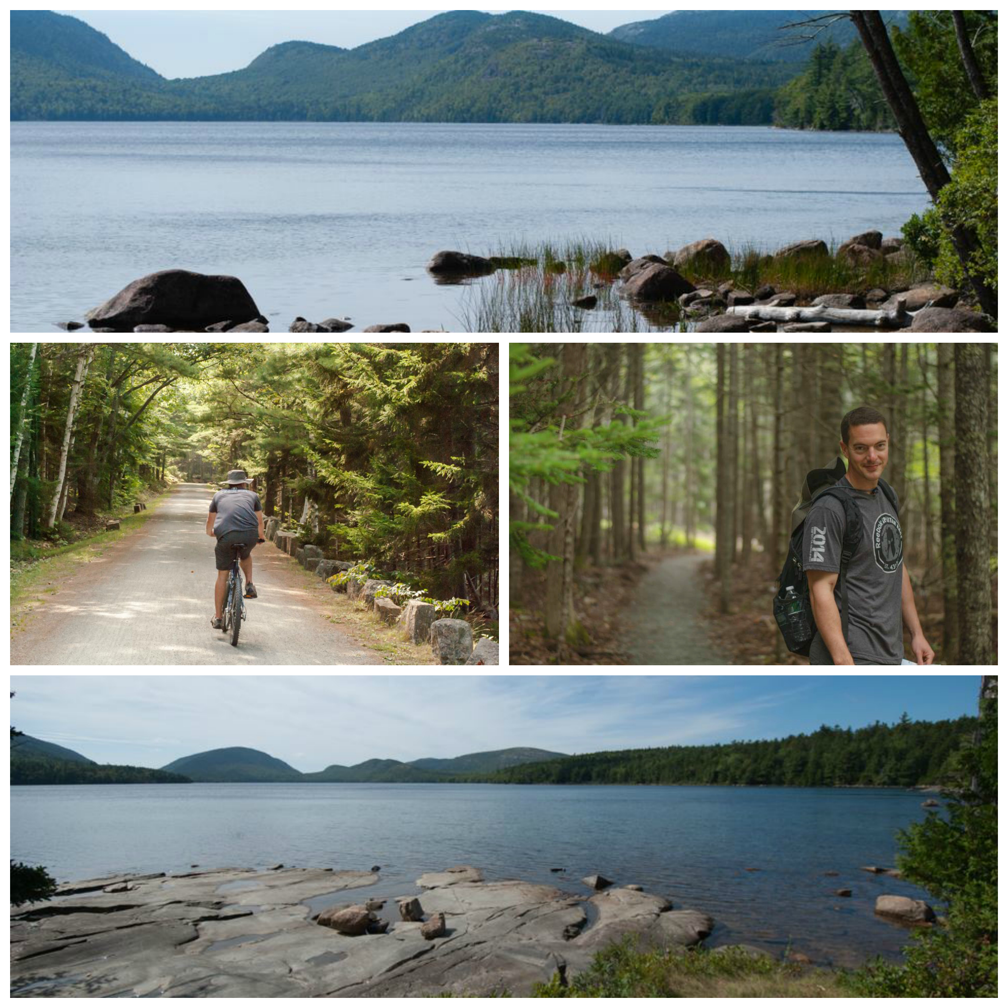 For mountain biking, we rented bikes in Bar Harbor from Acadia Bike for two days and biked around Eagle Lake, Bubble Pond and Jordan’s Pond using the Carriage roads. In the early 1900’s, John D. Rockefeller, Jr. constructed 57 miles of Carriage Roads for the use of hikers, bikers, horse riders, and horse-drawn carriages on the island. There are no cars allowed on the Carriage roads and they are kept in pristine condition by volunteers in the area. The Carriage roads are very hilly but not considered useable by only experts. We found it to be a great workout though! For the cycle-enthusiast, the most challenging pathway is along the summit road up to Cadillac Mountain. However, this is not considered a Carriage road and bicyclists share the winding roadway with motor vehicles and should be very cautious.
